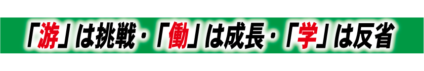 「游」は挑戦、「働」は成長、「学」は反省